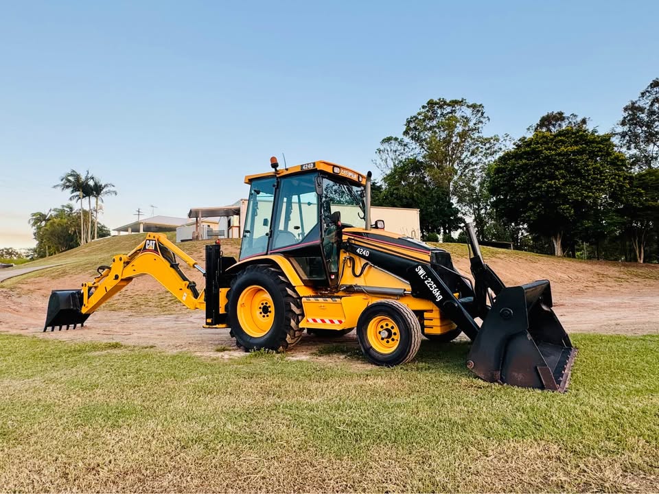 2008 Caterpillar 424D Backhoe Loader – 7,045 hours, well-maintained and recently serviced. Features a 4-in-1 front loader bucket with new 2.4m cutting edge, 900mm rear mud bucket with teeth, and genuine CAT 300mm trenching bucket. Enclosed cab with air conditioning, approx. 80% tyres, comes with two keys and owner’s manual. Engine and hydraulics are tight, starts easily, and ready for work. Honest, reliable machine in regular use – inspection and test drive welcome.