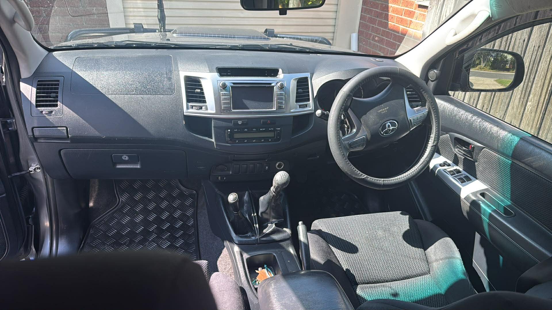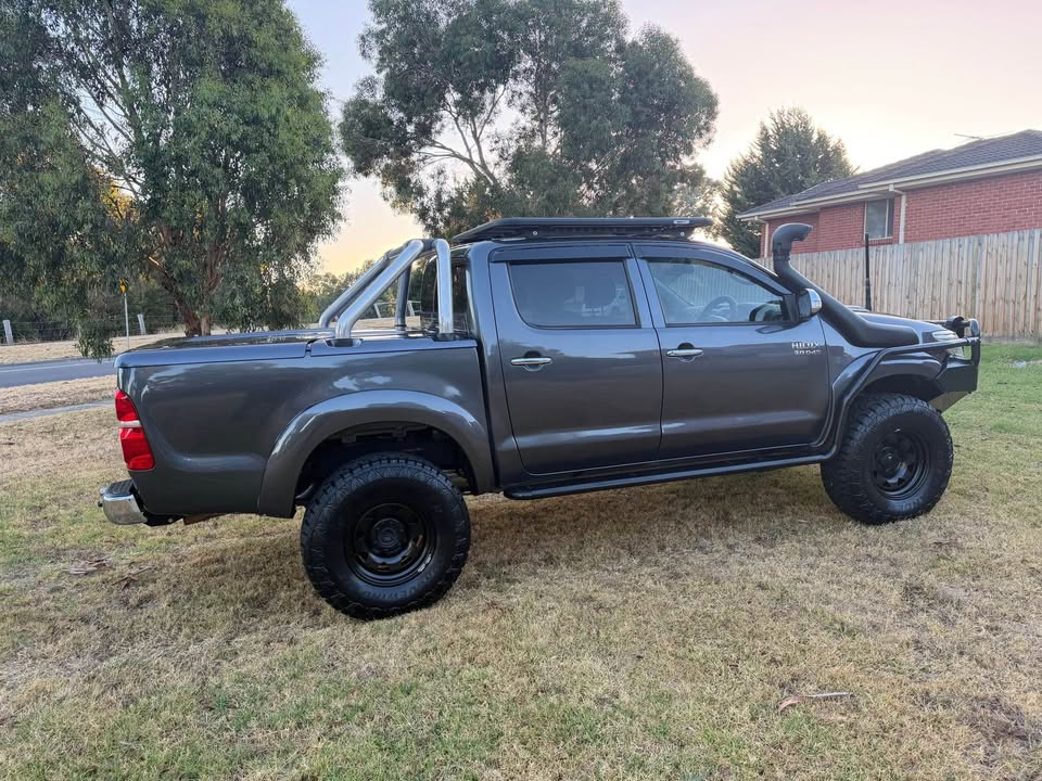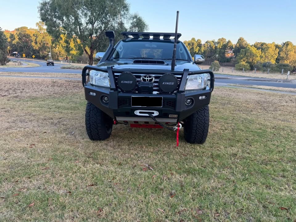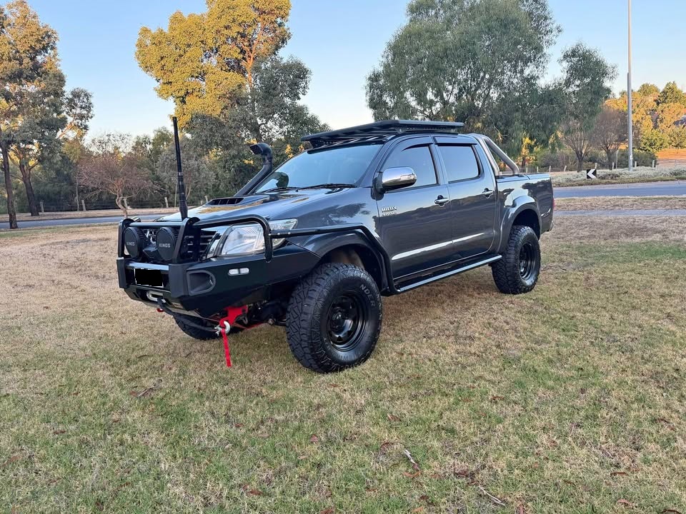 2014 Toyota Hilux SR5 – 137,500km, 3.0L Diesel, Manual, Charcoal exterior with Black interior. Very good condition inside and out. Comes with bullbar with winch, lift kit, roof rack with sports lights, bash plate, reverse camera, brand new mud tyres, full service history, and all other extras. Reliable, tough, and ready for work or adventure. Rego: 2DC4SK.