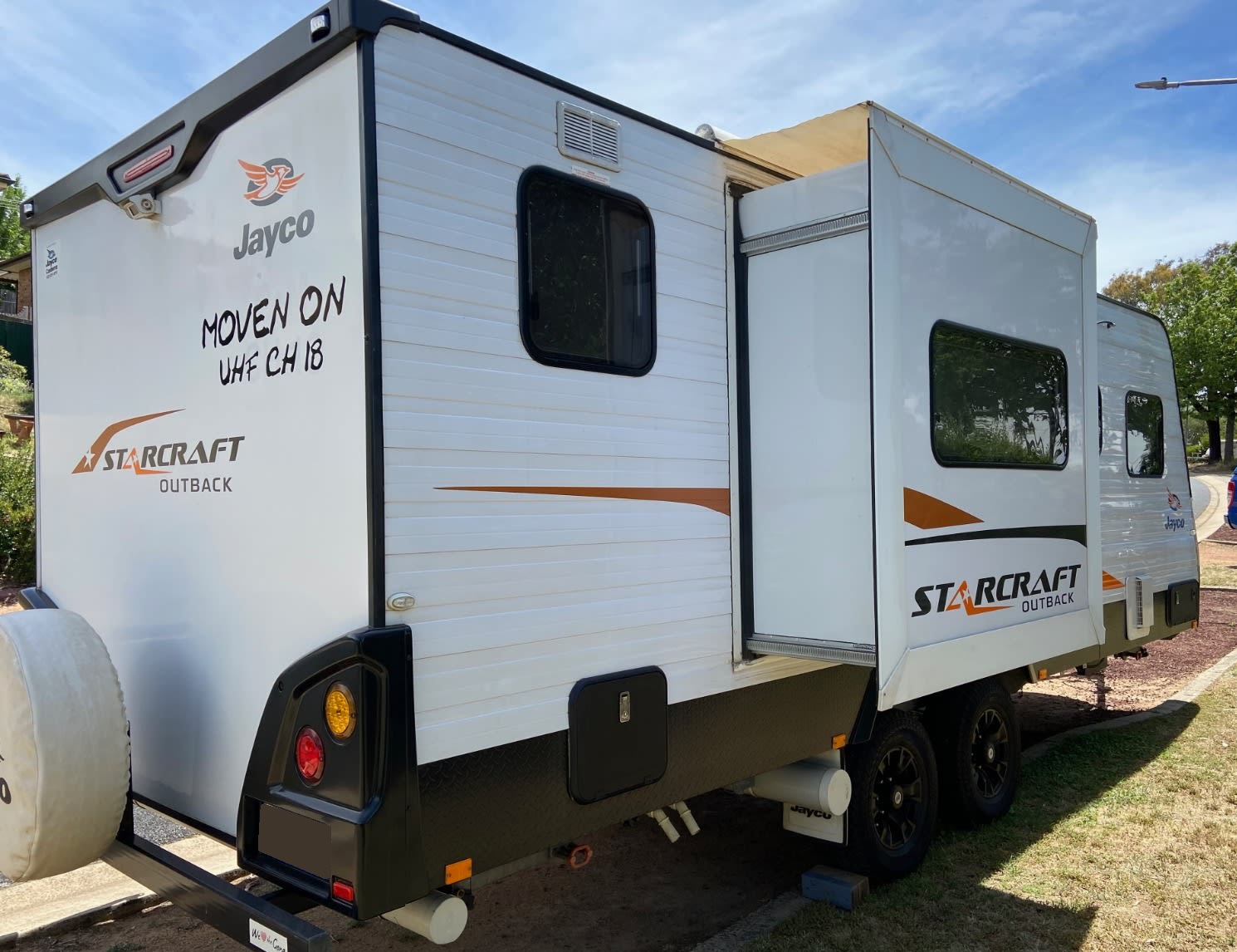 2015 Jayco Starcraft Outback 21.66.3 – 6.33m body, 2.47m wide, Tare 2,291kg, ATM 2,766kg, Tow Ball Weight 165kg. Fully off-road capable with JTECH independent suspension, rear-mounted spare, and 4-wheel independent suspension. Features include IBIS air-conditioning, 3kg washing machine in ensuite, robes with dressing table, club lounge with TV & convertible bed, full annexe with open-weave floor, fitted outdoor picnic table, privacy screen, slide-out pantry drawers, built-in wine storage, as-new roll-out awning, Hayman Reese weight-distributing hitch, anti-sway breakaway system, and all necessary poles, ropes, and tent pegs. Perfect family touring van with comfort, convenience, and off-grid readiness.