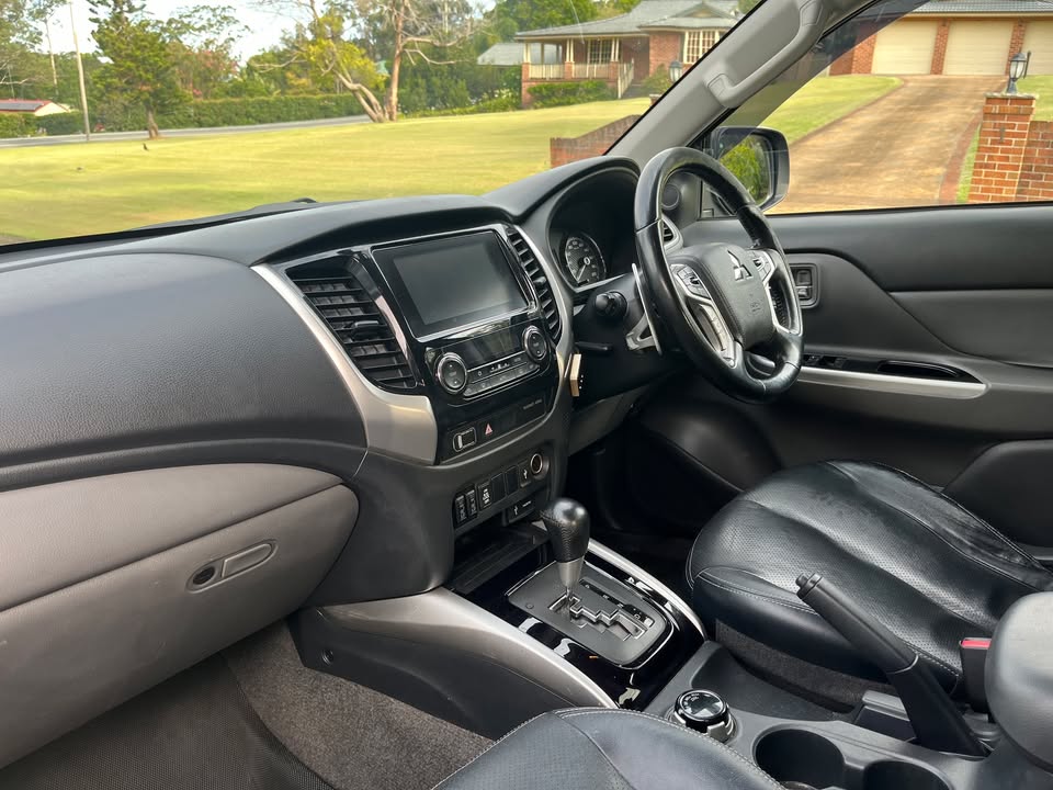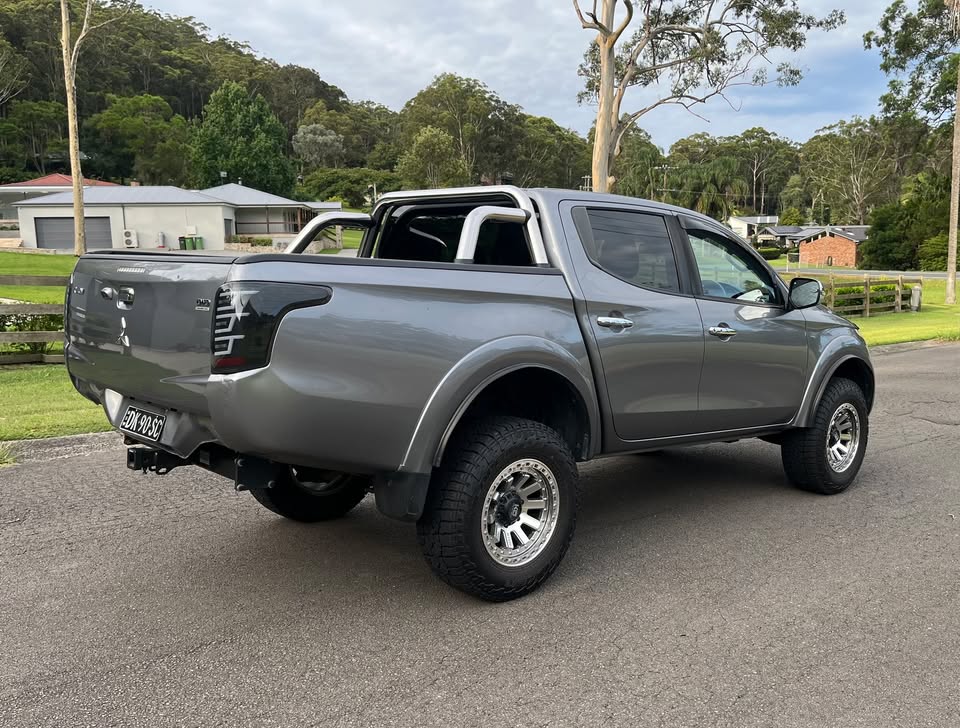2016 Mitsubishi Triton Exceed – 178,000km, 2.4L MIVEC Turbo Diesel, 5-Speed Automatic, Grey, 4WD with high/low range. Features heavy-duty suspension, Super Select II 4WD with locking centre diff, factory rear locking diff, leather interior, Apple CarPlay, heated front seats, dual-zone climate control, Exceed DRL, 16–18” alloy wheels, sports bar, fog lights, side steps, tow bar (new wiring harness, never used), bed liner, roof rails (optional), 265/70/17 Falken Wildpeak AT3W tyres (90% tread), TruFit 3D mats front & rear, tinted windows, tinted weather shields & bonnet protector, SAAS throttle controller. Safety & convenience include reverse camera, rear parking sensors, multiple airbags, ABS with EBD, hill start assist, traction control, cruise control, keyless entry & push-button start. Tow capacity ~3,100kg braked. Well-equipped for off-road and everyday use.
