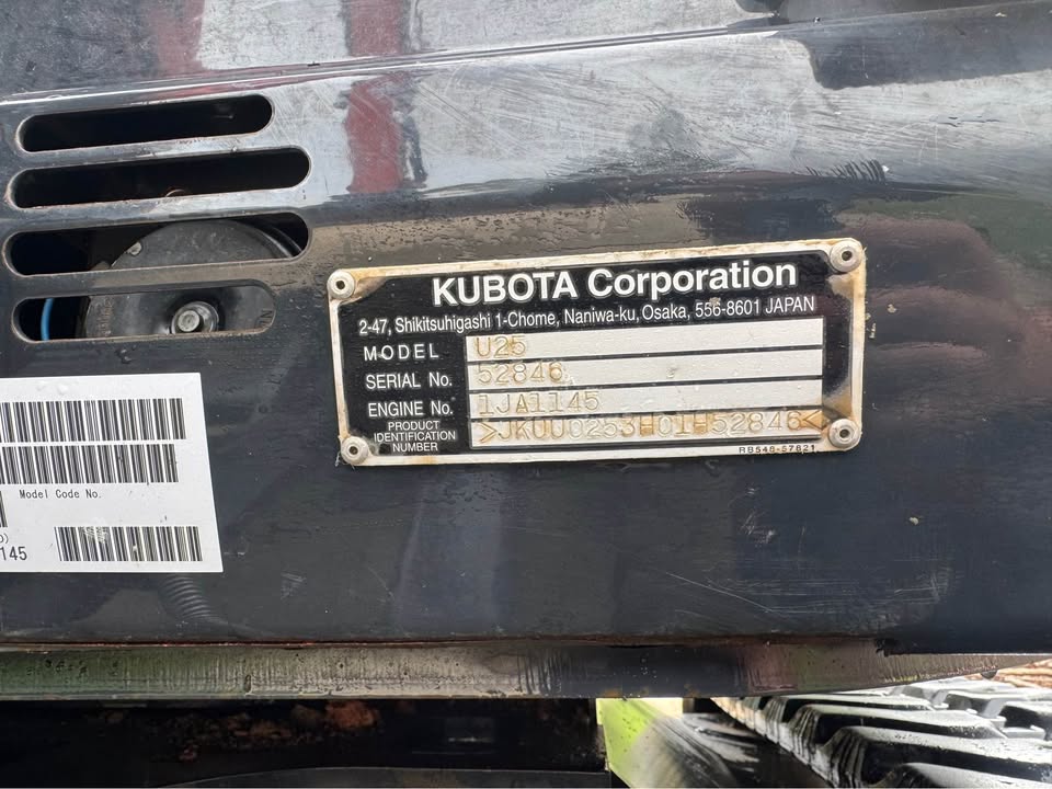 2018 Kubota Excavator U25-3 Exterior colour: Orange · Interior colour: Black