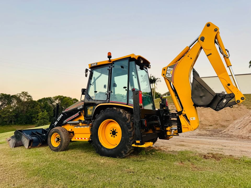 2008 Caterpillar 424D Backhoe Loader – 7,045 hours, well-maintained and recently serviced. Features a 4-in-1 front loader bucket with new 2.4m cutting edge, 900mm rear mud bucket with teeth, and genuine CAT 300mm trenching bucket. Enclosed cab with air conditioning, approx. 80% tyres, comes with two keys and owner’s manual. Engine and hydraulics are tight, starts easily, and ready for work. Honest, reliable machine in regular use – inspection and test drive welcome.