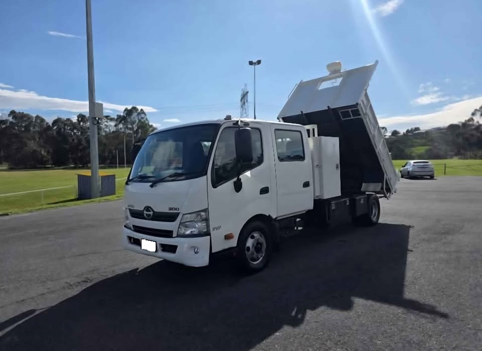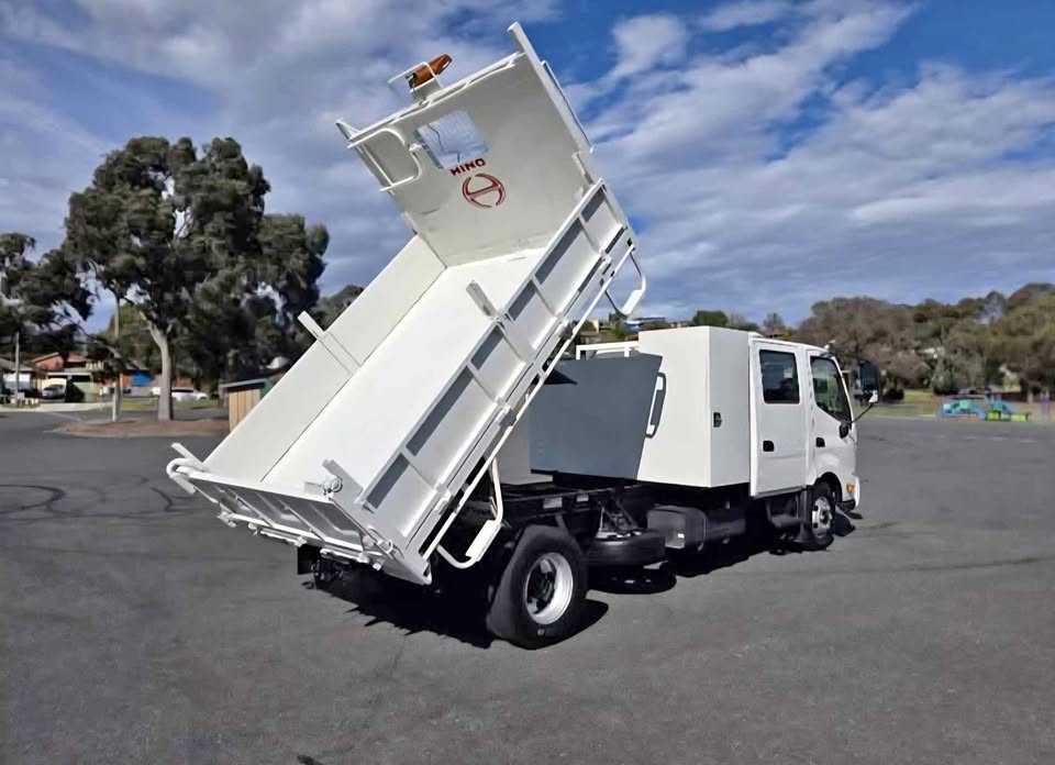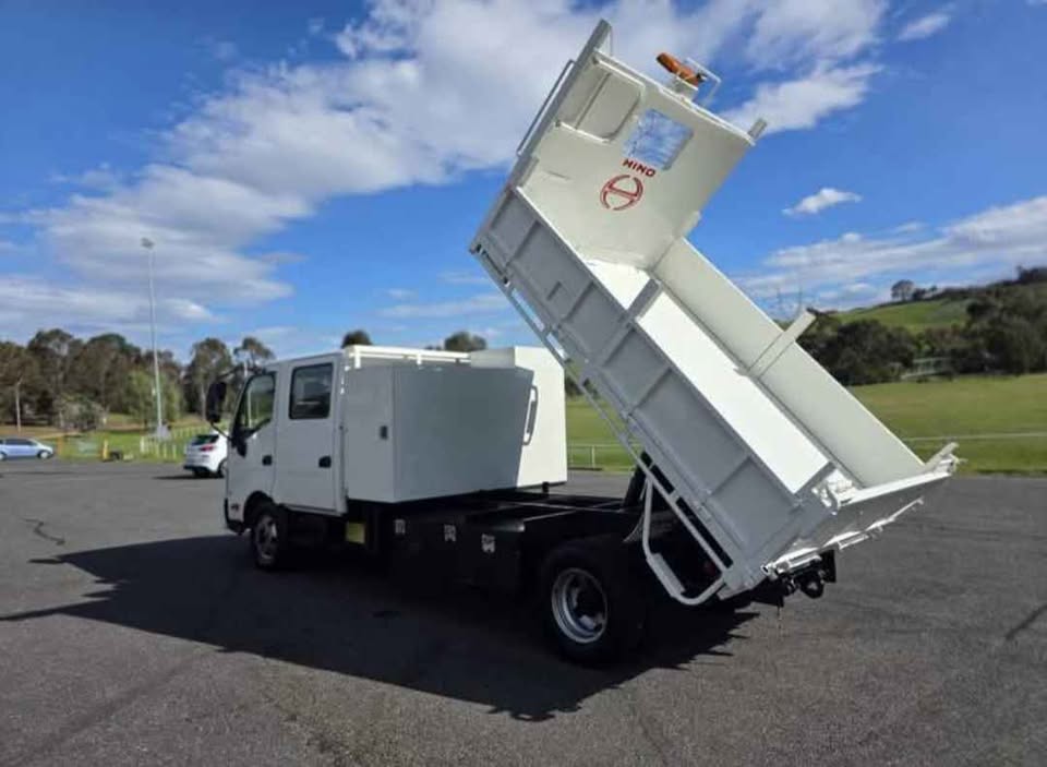 2012 HINO 300 717 Crew Cab Tipper – Low kms (83,629km), Drive Away – No More to Pay. Features 4 Cylinder Diesel Engine, 6-Speed Manual Transmission, 6x brand new tyres, serviced with genuine filters & oil, LED rotating beacons, reverse siren, lockable toolboxes in tray with keys, additional under-tray toolbox, tow bar, and LED work lights. Tare: 4,320kg | GVM: 6,500kg | GCM: 10,000kg | VIN: JHHNCT1H90K001295. Well-maintained, presents and drives like new – ready for work.
