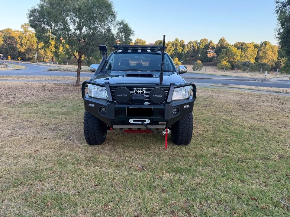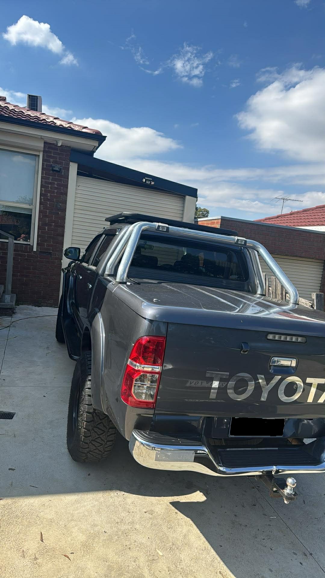 2014 Toyota Hilux SR5 – 137,500km, 3.0L Diesel, Manual, Charcoal exterior with Black interior. Very good condition inside and out. Comes with bullbar with winch, lift kit, roof rack with sports lights, bash plate, reverse camera, brand new mud tyres, full service history, and all other extras. Reliable, tough, and ready for work or adventure. Rego: 2DC4SK.