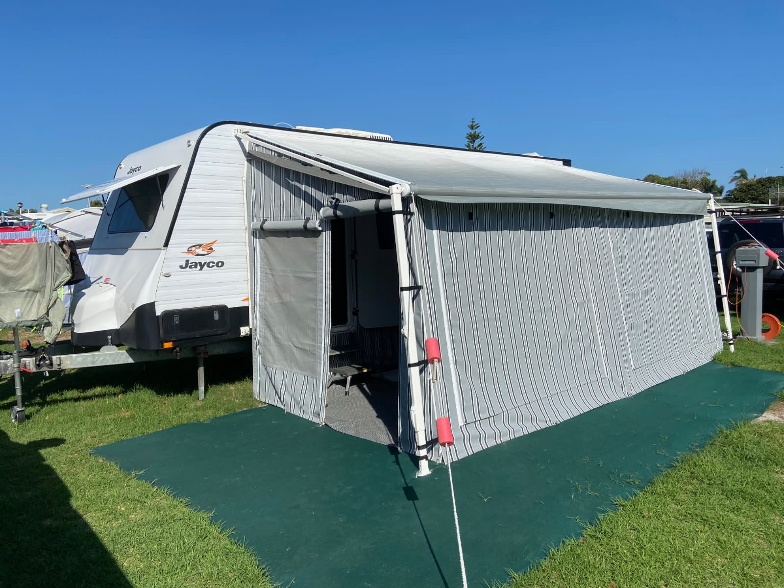 2015 Jayco Starcraft Outback 21.66.3 – 6.33m body, 2.47m wide, Tare 2,291kg, ATM 2,766kg, Tow Ball Weight 165kg. Fully off-road capable with JTECH independent suspension, rear-mounted spare, and 4-wheel independent suspension. Features include IBIS air-conditioning, 3kg washing machine in ensuite, robes with dressing table, club lounge with TV & convertible bed, full annexe with open-weave floor, fitted outdoor picnic table, privacy screen, slide-out pantry drawers, built-in wine storage, as-new roll-out awning, Hayman Reese weight-distributing hitch, anti-sway breakaway system, and all necessary poles, ropes, and tent pegs. Perfect family touring van with comfort, convenience, and off-grid readiness.